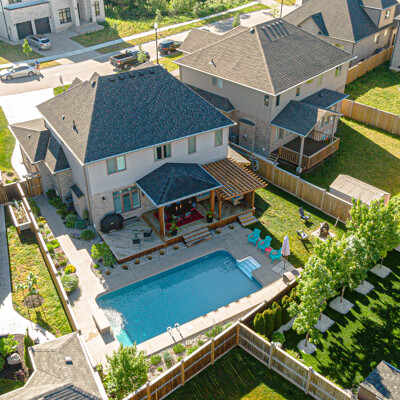 Step outside to your backyard resort! Enjoy summers in your 16’x32’ heated inground pool with the sounds of the waterfall. The 2 tier covered porch is the perfect entertaining space to dine or relax. There will never be a reason to leave.