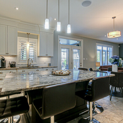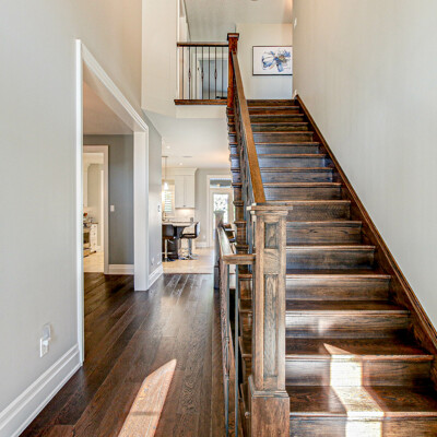 Step inside to 9’ ceilings, premium finishes including white oak wide plank hardwood flooring on main and upper, all solid wood trim, and fully finished top to bottom. On the main floor you will find high ceilings, a grand foyer, spacious den/office, large dining room, eat-in kitchen with custom cabinetry and marble countertops, a bright and spacious living room with gas fireplace and cabinetry, a powder room and a mudroom. Upstairs are 4 generous sized bedrooms. The primary bedroom is spacious with a large ensuite with large custom glass shower and soaker tub, walk-in closet and a second closet. You will also find an insulated for sound reduction laundry room with cabinetry and another full bathroom.