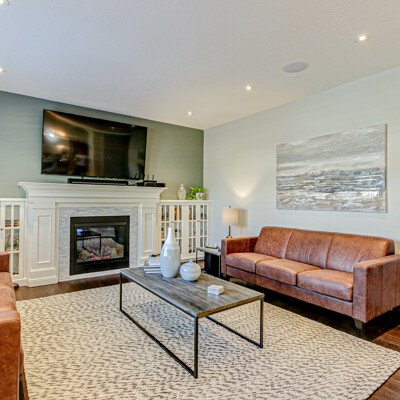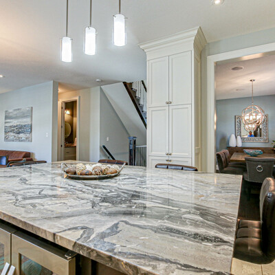The lower level is fully finished with plush carpet with insulated subfloors and has a plenty of storage. There is a cold cellar, bedroom, large family room with a 60” fireplace, bar with a walk-in pantry and a bathroom with heated floors. Could also be converted to an in-law suite.