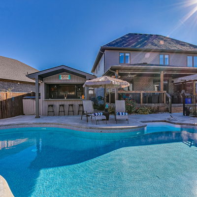 Dreams do come true, and here it is…Welcome to 2320 Ballymote Way! Located in North London in the desirable Ballymote Woods. This custom home is built with lifestyle & entertaining in mind & pride of ownership is evident throughout. Approx. 3900 sq.ft of finished space, located on a large pie-shaped lot. The 8 car concrete driveway and the oversized heated garage with an extra deep bay, parking will never be an issue. Inside this beautiful home, you will find 9’ ceilings with oversized 8’ doors, a beautiful custom chef's kitchen, with a HUGE island, induction cooktop, built-in appliances (microwave, oven, warming drawer/slow cooker), walk-in pantry, and a butler pantry leading to a large dining room with a beautiful custom ceiling. The bright & spacious living room has a gas fireplace and grey, maple hardwood floors. There is an office, mudroom with built-in cabinetry, and a powder room also on the main floor. Upstairs, you will find a master bedroom with a large walk-in closet, ensuite with soaker tub, and a luxury shower. You will also find 3 more bedrooms, laundry room and a full bathroom. Downstairs is fully finished, with a custom wine cellar, bathroom with heated floors and a walk-in shower, gym, wet bar, bedroom (currently being used as a kids playroom), and a large family room with a beautiful 60” fireplace and oversized windows throughout to make it nice and bright. In the backyard, you will find your own resort. With over $150K spent, there is nothing left to do but enjoy! From the stamped concrete path and patio, Custom L-shaped shed with an electric roll-up door, large covered deck with solar remote shades, heated inground saltwater pool, sunken firepit area, large pool cabana; equipped with a wet bar, granite countertops, beer taps, change room and even an electric window to close up the bar, there will never be a reason to leave! There are way too many things to list, so book your showing today, this rare find won’t last long!